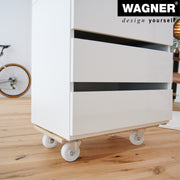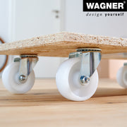 This sturdy Wagner moving dolly 64-1141 is made from 100% formaldehyde-free OBS plate. With it you can move boxes devices and heavy loads of up to 550 lbs. effortlessly and comfortably on an area of 23x12. Solid rubber wheels ensure safe transport even on uneven floors. Made in Germany and Wagner tested quality seal guarantee the highest quality. Perfect for indoor transport in the warehouse picking as well as for easy movement in the office in the workshop when shopping or when moving. For those who want to move tools shopping boxes or other heavy loads up to 550 lbs. comfortably and safely. With the caddy weighing only 6lbs. and thanks to the handle hole you can move and store the transport aid easily. Castors made of galvanized industrial steel high-quality plastic and roller bearings ensure optimum mobility and smooth transport on robust floors. Environmentally friendly recycled material.