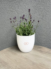 6.3" White Boston Indoor Ceramic Pot. 4 pots per tray must order in tray quantities. 100% waterproof. Made in Germany with 100% rainwater and natural native clay. No drainage holes so no worry about damage to furniture. Just drop in - no need to replant. 4 pots per tray 7.0 lb. tray weight