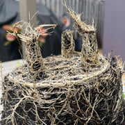 Worlds first Bamboo Fiber self-watering pot this 7" Indigo Flower Round self-watering pot is made from sustainable biodegradable all natural Bamboo Fiber and corn starch. Plants thrive in this natural Bamboo Fiber pot that is plastic free. The soil is better aerated by the unique water well in the base allowing better nutrient management helping the plants grow healthy and strong. These pots should be treated like ceramic suitable for use in hot or cold climates inside or outside. At initial planting water from the top until water is just below the overflow. Then periodically check the water level in the base and add water to the well from the bottom access or from the top of the pot. The soil draws water up from the well as needed using capillary action just like a wick. No more overwatering strong healthy plants is the result! Everyone gets a "green thumb" growing in bamboo pots and just by keeping water in the well! When you are finished with your pot just break it up and put into your compost bin. Over time the material will degrade back to nature.