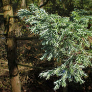 'Boulevard' is a Sawara cypress with soft, silvery-blue foliage and a conical growth habit, making it a popular choice for both landscapes and container gardens.