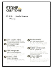 These adorable one-of-a-kind carved stone hedgehogs are great accent pieces around your garden or in your home. And they make perfect gifts! Since each boulder pet is unique height and weight are approximate. 3-4"H 1-2 lbs