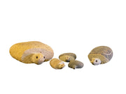 This adorable Family of Boulder Turtles would be a great addition around your garden or in your home. They also make perfect gifts! They are hand carved from Natural Granite Boulders making each turtle unique in size and color. This 5 piece set includes two 4" 1-2lbs one 6" 2-3lb one 10" 9-11lb & one 14" 27-29lb Boulder Turtle. Height and weight are approximate.