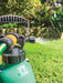 NO pump NO gas NO charge NO battery. 1.3 gallon sprayer. Just fill & spray. Full pressure from full to empty with the Power Pouch Self-Pressurized System.4 Pattern spray wand reaching as high at 16'. It comes with quick connector hose fittings. Intended use is for application of pesticides fertilizers herbicides and light watering. Handheld with comfort grip.