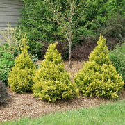 Soft Serve® is a dense, conical cypress with soft, feathery foliage that is dark green on top and lighter underneath, resembling the texture of soft-serve ice cream.