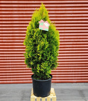 Amber Gold arborvitae brightens the winter landscape with its golden-yellow foliage that turns amber in the colder months, providing year-round interest.