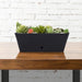 Worlds first Bamboo Fiber self-watering pot this 16" Black Rectangular self-watering planter is made from sustainable biodegradable all natural Bamboo Fiber and corn starch. Plants thrive in this natural Bamboo Fiber planter that is plastic free. The soil is better aerated by the unique water well in the base allowing better nutrient management helping the plants grow healthy and strong. These planters should be treated like ceramic suitable for use in hot or cold climates inside or outside. At initial planting water from the top until water is just below the overflow. Then periodically check the water level in the base and add water to the well from the bottom access or from the top of the planter. The soil draws water up from the well as needed using capillary action just like a wick. No more overwatering strong healthy plants is the result! Everyone gets a "green thumb" growing in bamboo planters and just by keeping water in the well! When you are finished with your planter just break it up and put into your compost bin. Over time the material will degrade back to nature.