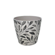5" Gray Leaves Round Self-Watering Bamboo Pot