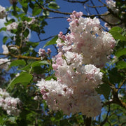 Beauty Of Moscow Lilac is a large upright deciduous shrub with green foliage. Huge panicles of pale pink buds open to highly fragrant soft white double flowers that bloom from mid to late spring. Best flowering with full sun and rich, moist well-drained neutral soils.