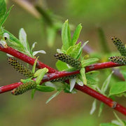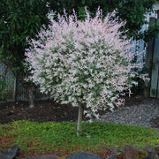 Dappled Willow is a compact multi-stemmed deciduous shrub grown for its variegated foliage on red stems. The foliage emerges pink, matures to green with white speckles, and gradually shifts to mostly green as summer progresses. The flowers are insignificant. Thrives in full sun, or afternoon shade in southern climates, and consistently well-drained soils.