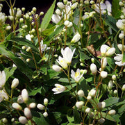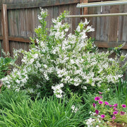 Dwarf Nikko Deutzia is a low-growing deciduous shrub with a graceful mounding habit.  Its medium green leaves turn deep burgundy in fall.  Tiny fragrant white flowers on upright panicles cover the shrub for two weeks in early spring.  Best bloom in full sun and moist, and well-drained soil.