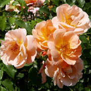 Flower Carpet Amber Rose is a care-free deciduous shrub with dark green foliage and a low-mounding habit. Red rosebuds open to massive blooms of small fragrant semi-double peachy amber roses that fade to shell pink and bloom continually from mid-spring until the first frost. Best grown in full sun and rich, moist, slightly acidic well-drained soils. Excellent disease and pest resistance, self-cleaning, and drought tolerant once established. Syn. with Rosa 'Sedana'.