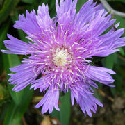 Honeysong Purple Stokes’ Aster is a fluffy compact native evergreen perennial with deep green foliage that forms a basal rosette. Cornflower-like royal purple flowers with tinges of red near the center that darkens with age bloom on erect leafy stems from midsummer into fall if deadheaded. Grows best with full sun and well-drained soils. Good drought and heat tolerance.