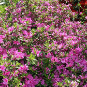 Karen Azalea is an unusually hardy evergreen shrub with an upright mounding habit and narrow dark green leaves that turns brilliant burgundy in fall. The heavy blooms of rich lavender-purple flowers begin to bloom in spring. A very versatile plant that prefers partial sun with acidic rich, well-drained soils.