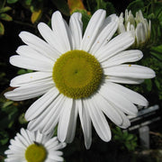 Nippon Daisy is a mounding perennial with glossy, coarsely toothed dark green foliage. The 3” white flowers with green eyes bloom in summer and can experience an additional bloom if deadheaded. Prefers full sun and dry to medium well-drained soil, but protection from afternoon sun in Southern climates.