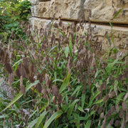 Inland Sea Oats is an upright grass with a clumping habit native to the rocky slopes and streams of the Eastern Coast. The bright green leaves sport distinguishing flat, drooping seedheads in terminal clusters that emerge green and mature to purple-bronze in late summer while the foliage shifts to copper after frost and eventually browns. Prefers part sun and moist well-drained soil.