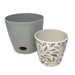 Self-Watering Plant Pot Set of 2 5" Gray Leaves & 7" Gray Solid