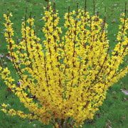 Show Off Forsythia is a deciduous shrub with an upright vase habit and medium green foliage. Dense clusters of bright yellow flowers bloom heavily in early spring completely coating the bare branches before its leaves are out. Flowers best in full sun and well-drained soils.